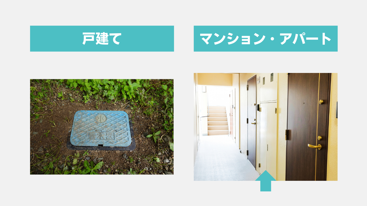 この章では建物別に水道メーターが設置されている場所をご紹介します。