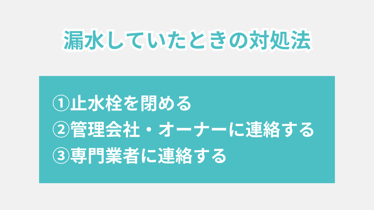 なぜなら、水漏れの原因によっては建物の管理者側にも対応してもらう必要があるからです。